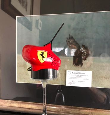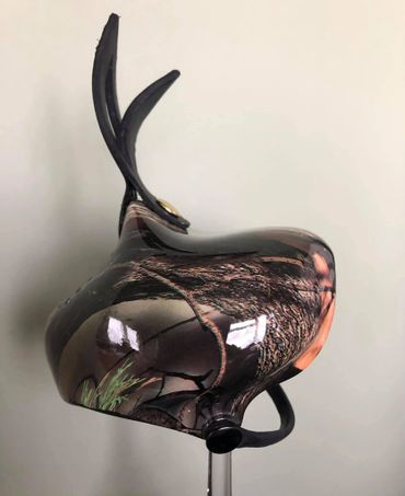 I use is a mixture of carbon ,kevlar ,and polyester with a nylon composite. All these materials are combined together in powder form, each one being added by different ratios to get the required end result ... it weights a fraction of leather stiffness with the right amount of flexibility strength plus the finished material is waterproof and breathable in its application. The Hood is printed by a SLS printer (selective laser sintering) look it up on the web... I have spent the last 4/5 years developing prototypes using different materials etc... I'm happy with the latest hoods using the latest materials and am now in a position to offer the hoods for sale for the larger Eagles at the moment . Smaller hoods will be coming on line shortly. The hoods will be offered in a variety of finishes and that will reflect on the finished prices. Stock hoods will be available in matt black and come complete. Other hoods will be offered in custom finishes such as with hydro dipped carbon finishes and many other type of Hydro transfers plus they will be finished in several coats of clear lacquer. Also they will be available using standard spray paint finishes etc etc see photos.