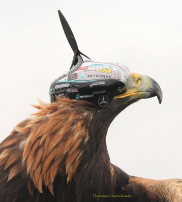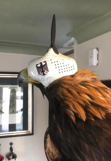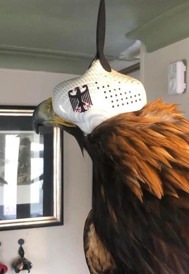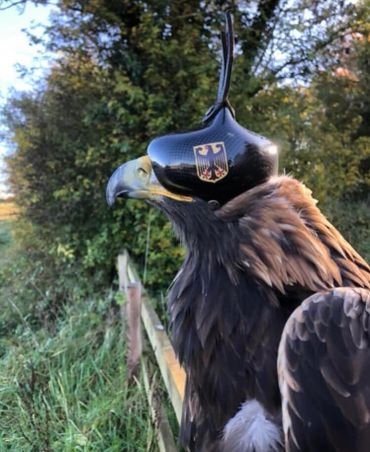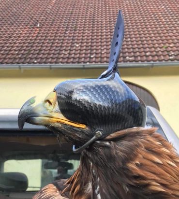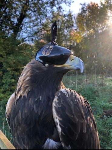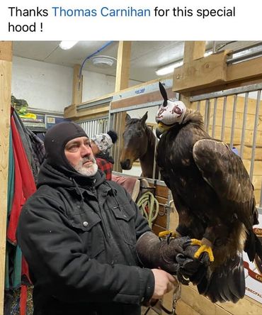 Laser Printed Hood displayed by top spanish falconer and Eagle man