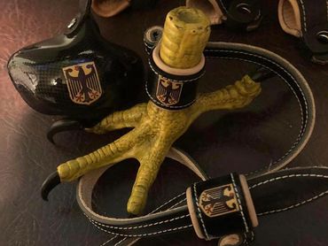Yesterday i was sent some new anklets to try on my young Bonelli and my female goshawk, by Thomas Carnihan All I can say tom is these are fantastic this has to be the most innovative thing that's happened in the world of falconry equipment in almost a hundred years. They are going to be a "game changer" as far as falconry equipment is concerned..to be able to slip them on and off so quick is unbelievable thank you so much for sending me some of your new “Kaiser Slipons” They are just the job, pictures soon to follow